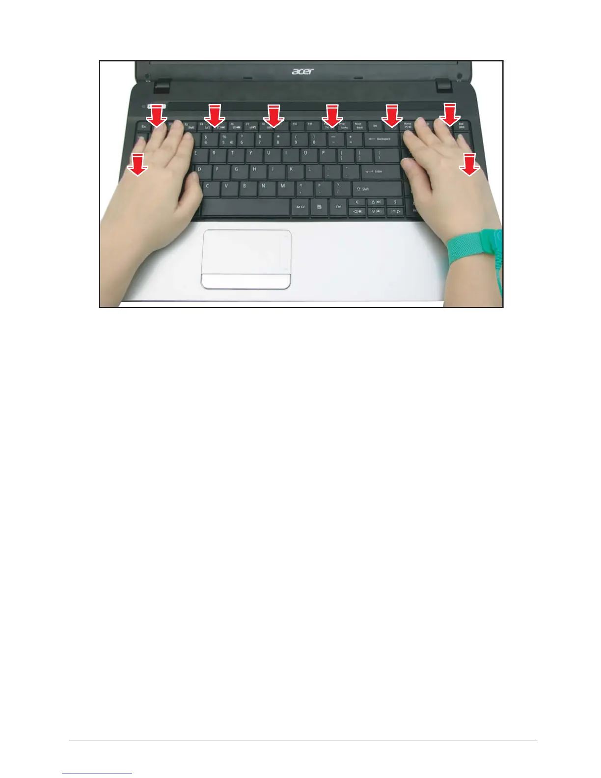3. Push to secure the keyboard to the latches of the upper case.
