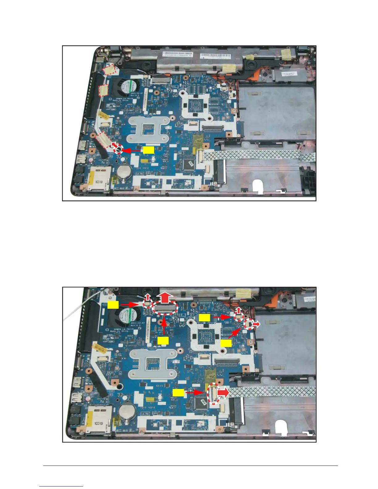 3. Pull the auxiliary (A) antenna cable to pass through the mainboard hole, detach the adhesive