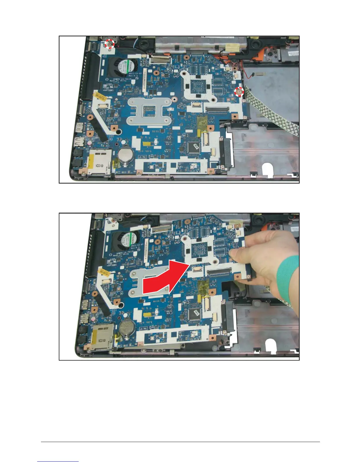 5. Remove the two (2) screws securing the mainboard to the lower case.
