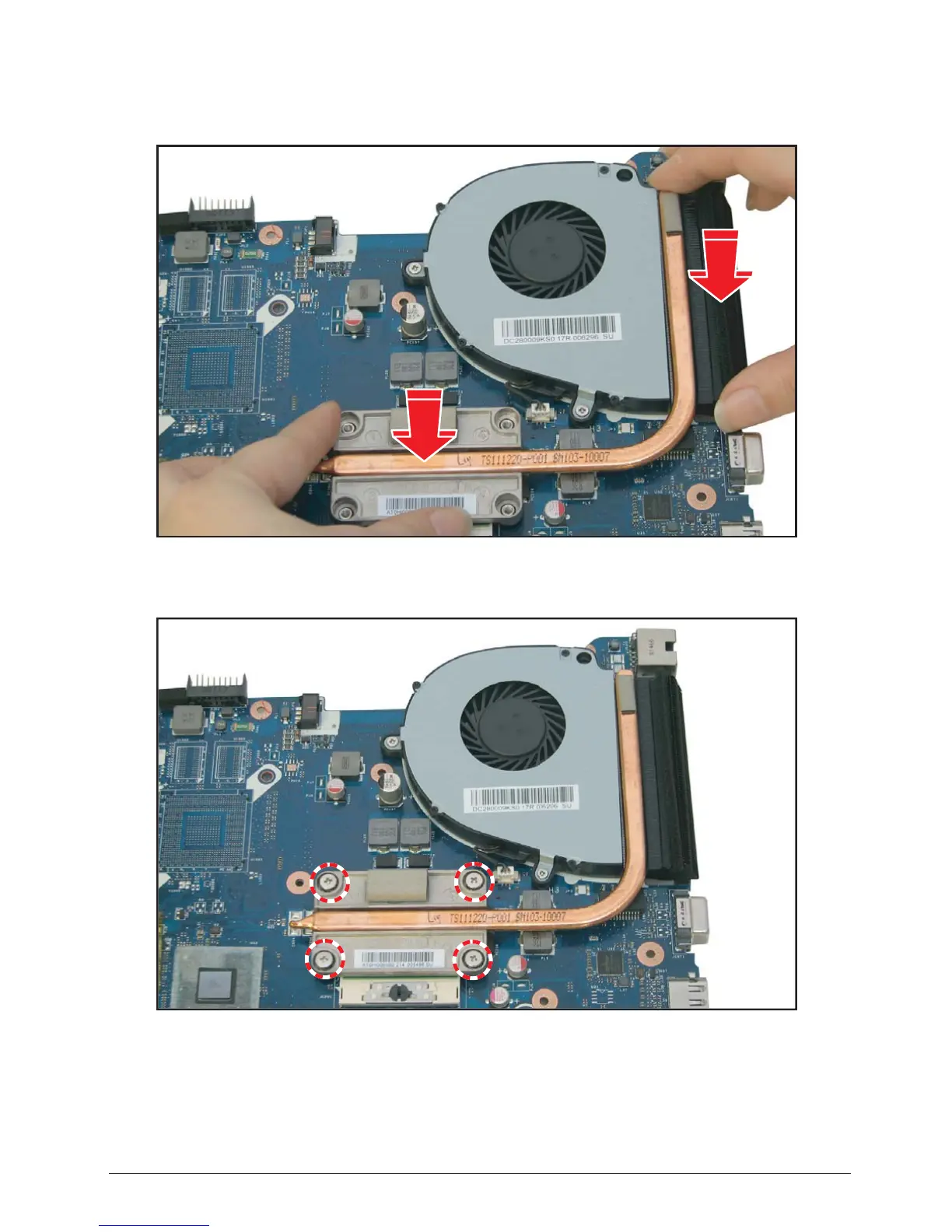 2. Attach the four (4) screws to secure the thermal module to the mainboard.