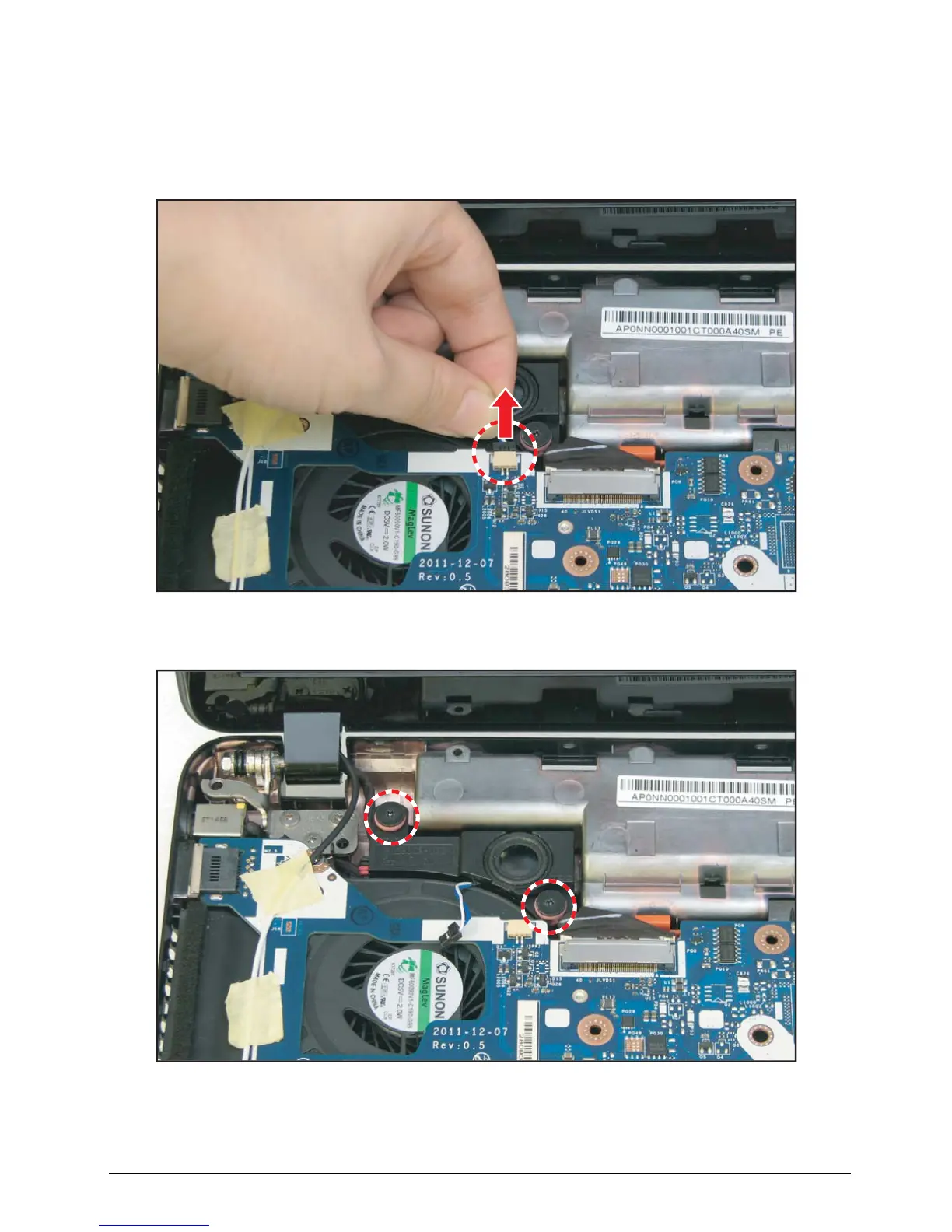 1. Disconnect the left speaker cable connector from the mainboard connector.