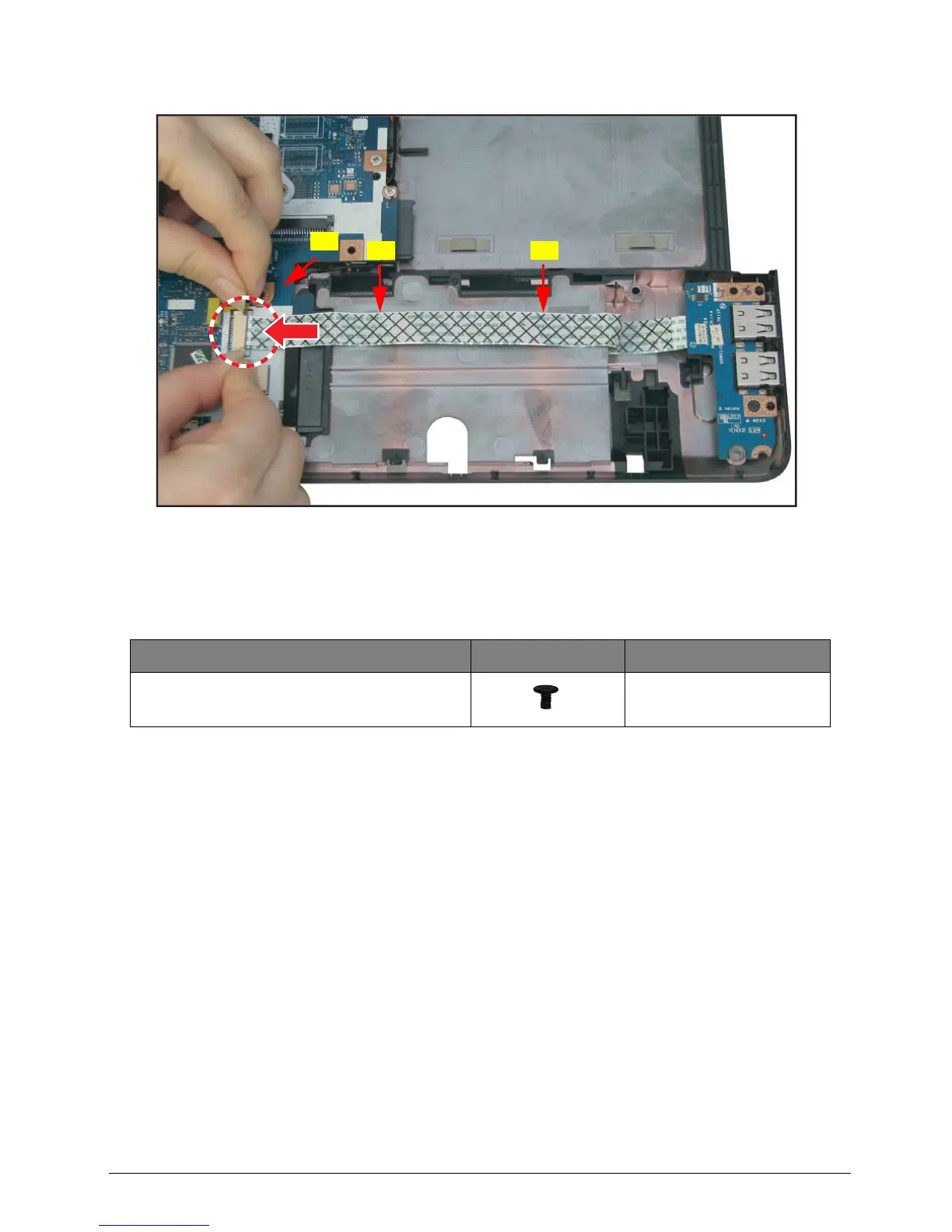 3. Press on (A) to attach the adhesives on the USB cable to the lower case and connect the USB