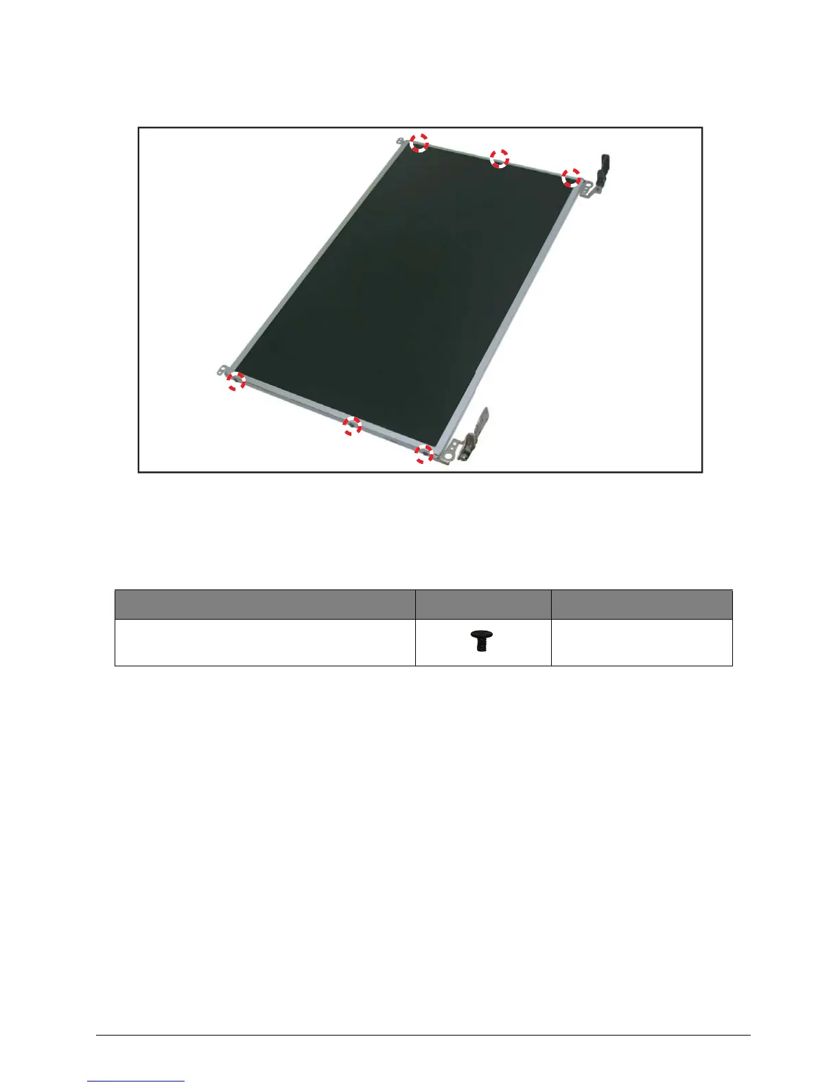 Table 5:16. LCD Panel Bracket Screws