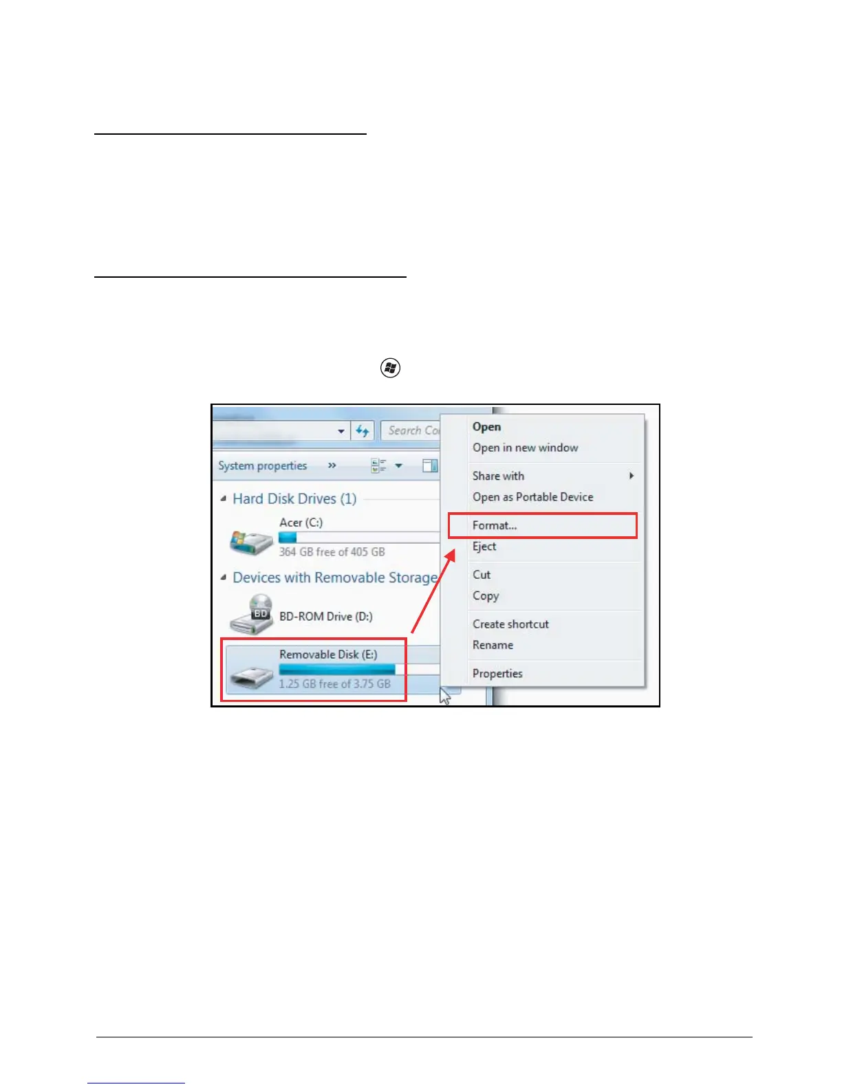 “Removable Disk”. Right-click on the USB disk, and select Format to format the USB disk,