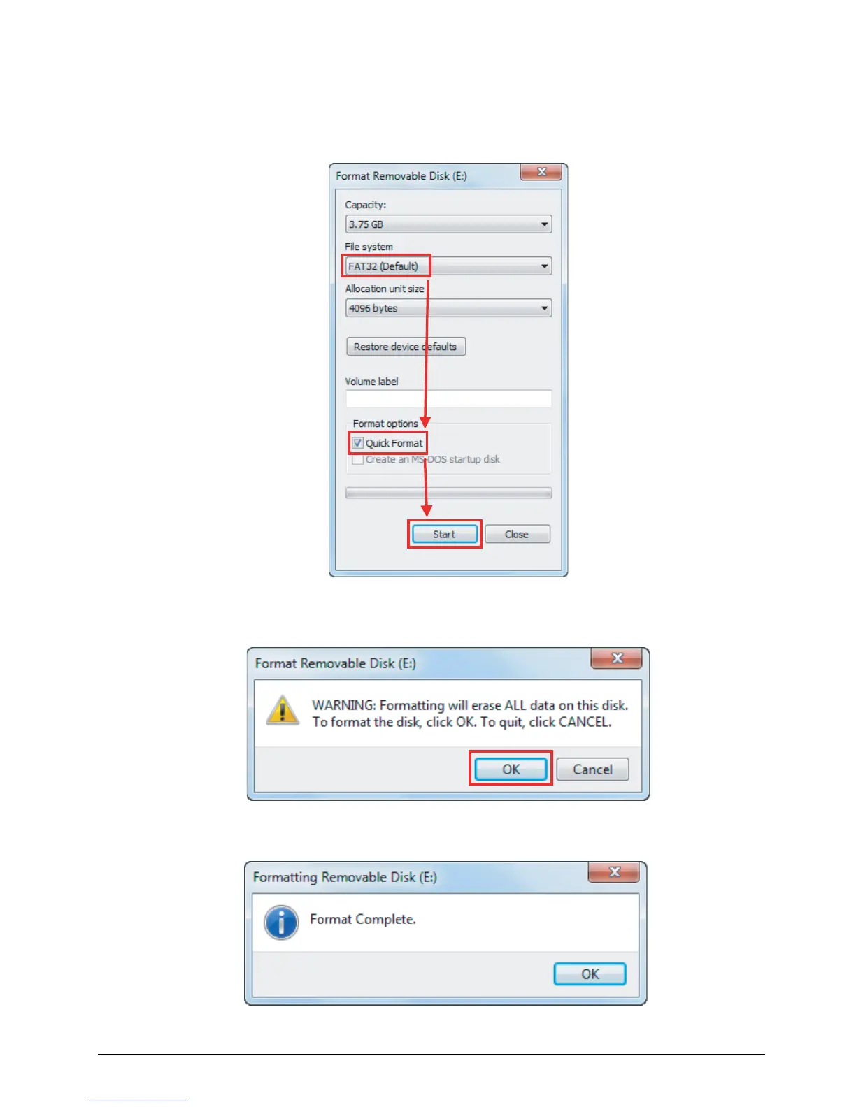 • Format Options: Select “Quick Format”