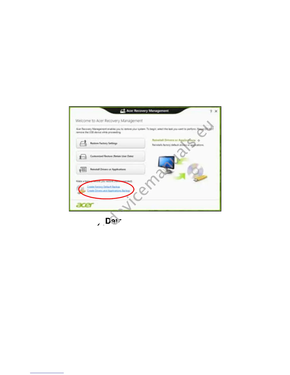 2. Click Create Factory Default Backup. The Recovery Drive window