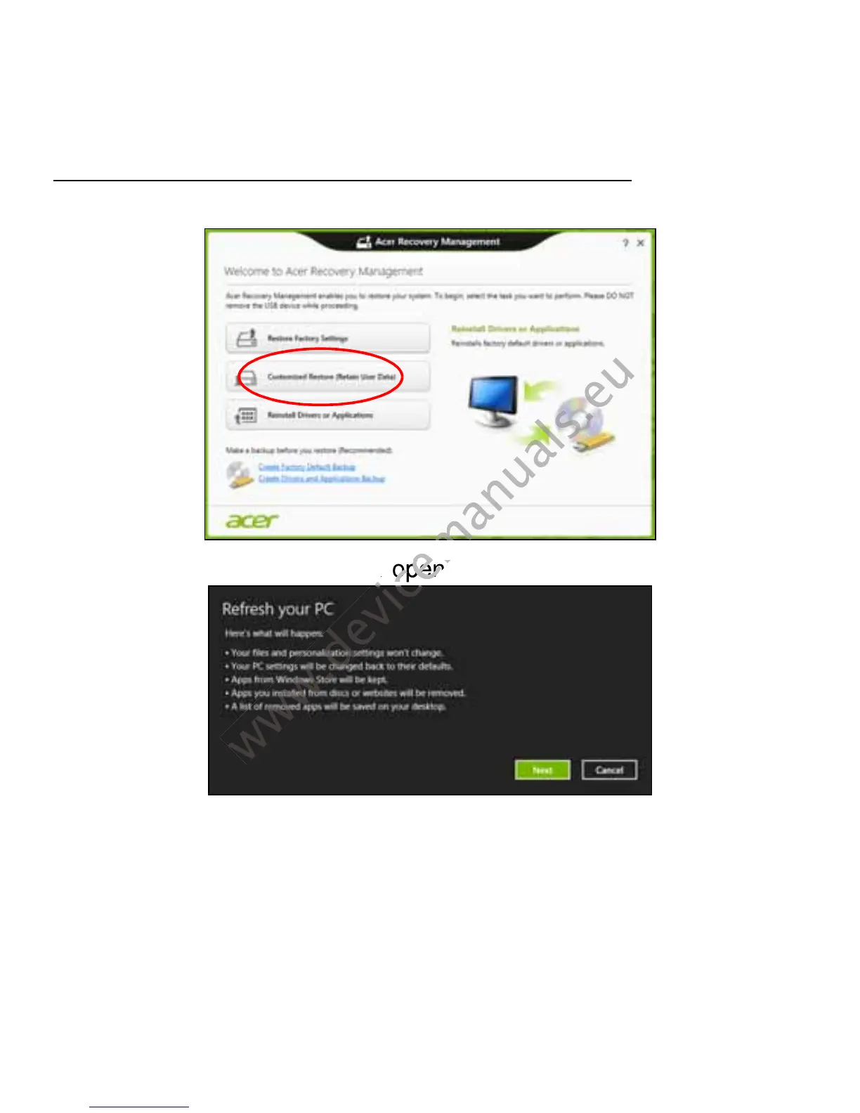 Customized Restore with Acer Recovery Management
