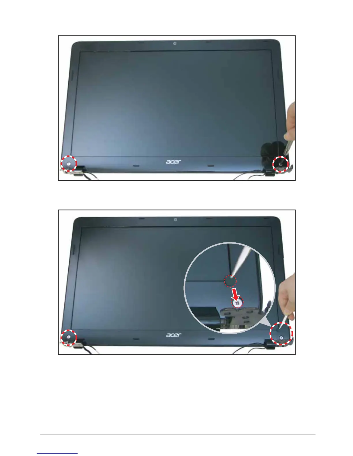 3. Attach the two (2) screws to secure the LCD bezel to the LCD module.