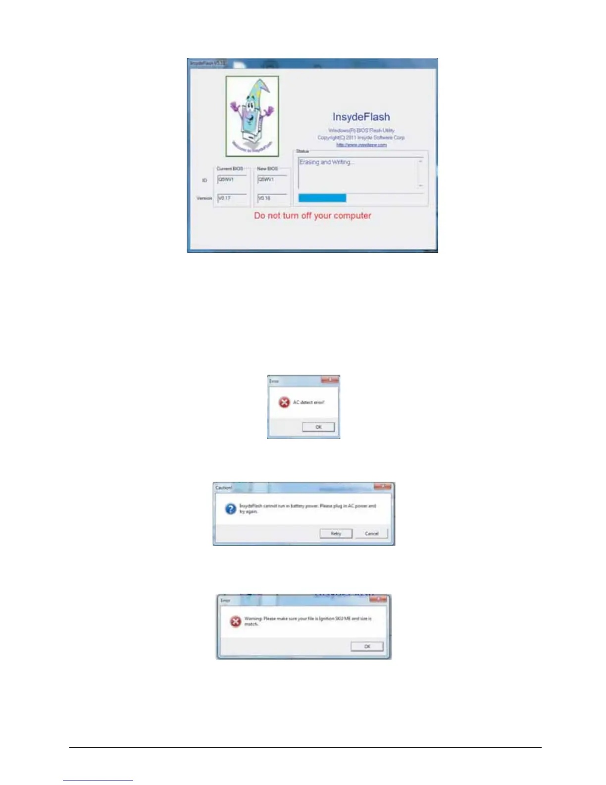 • If the AC adapter is not plugged in before Winflash starts, the following message is