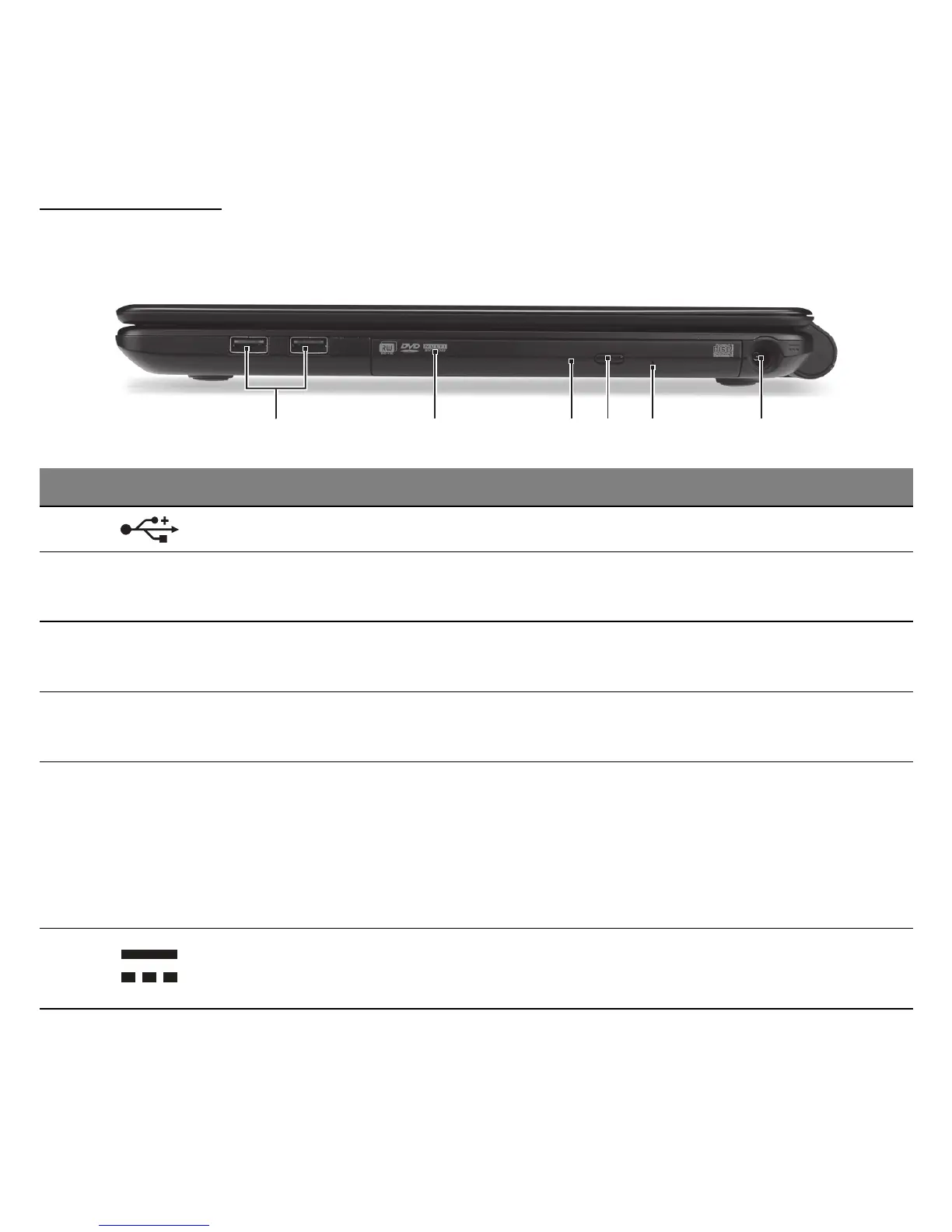 1 USB ports Connect to USB devices.