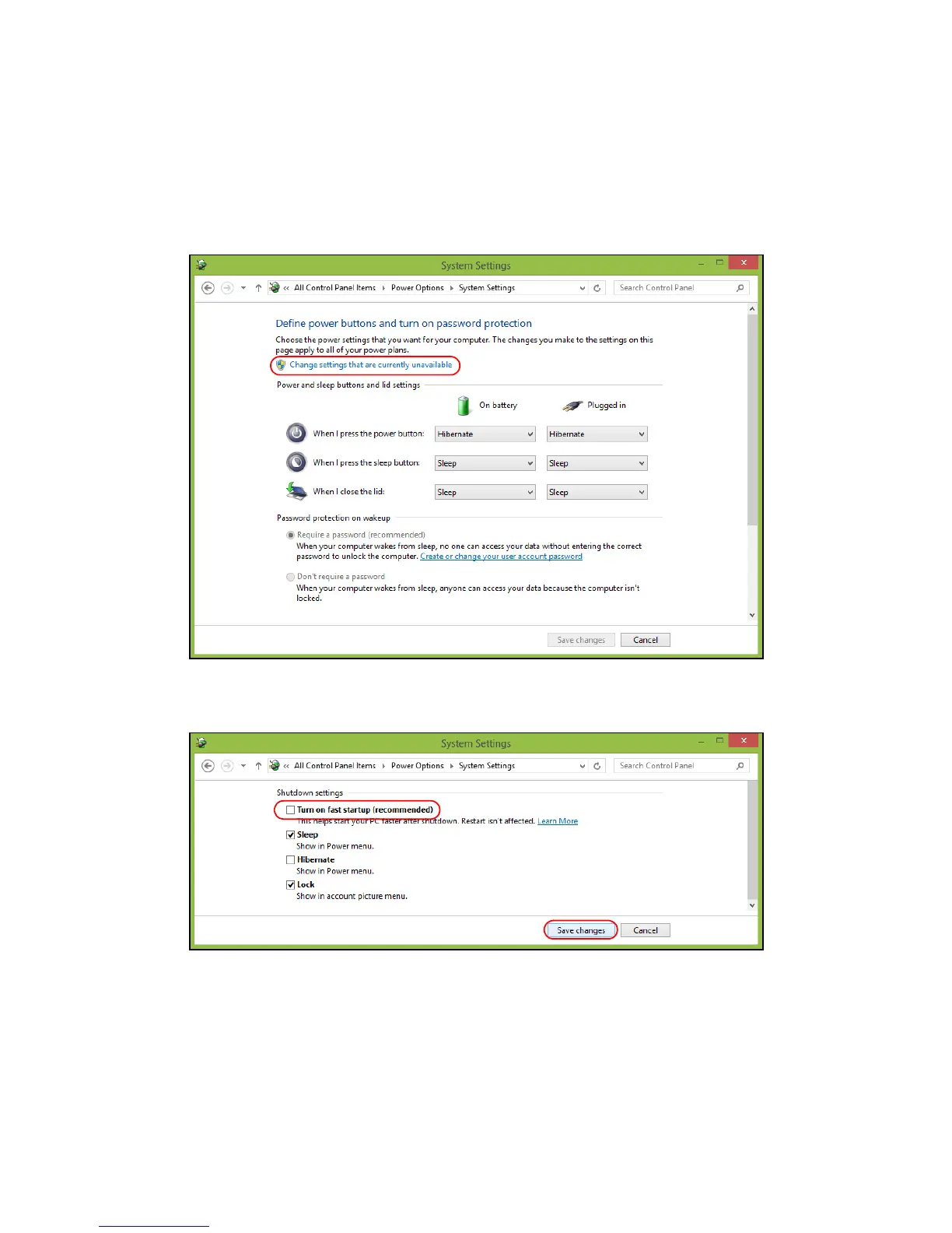 5. To access Shutdown Settings, select Change settings that are