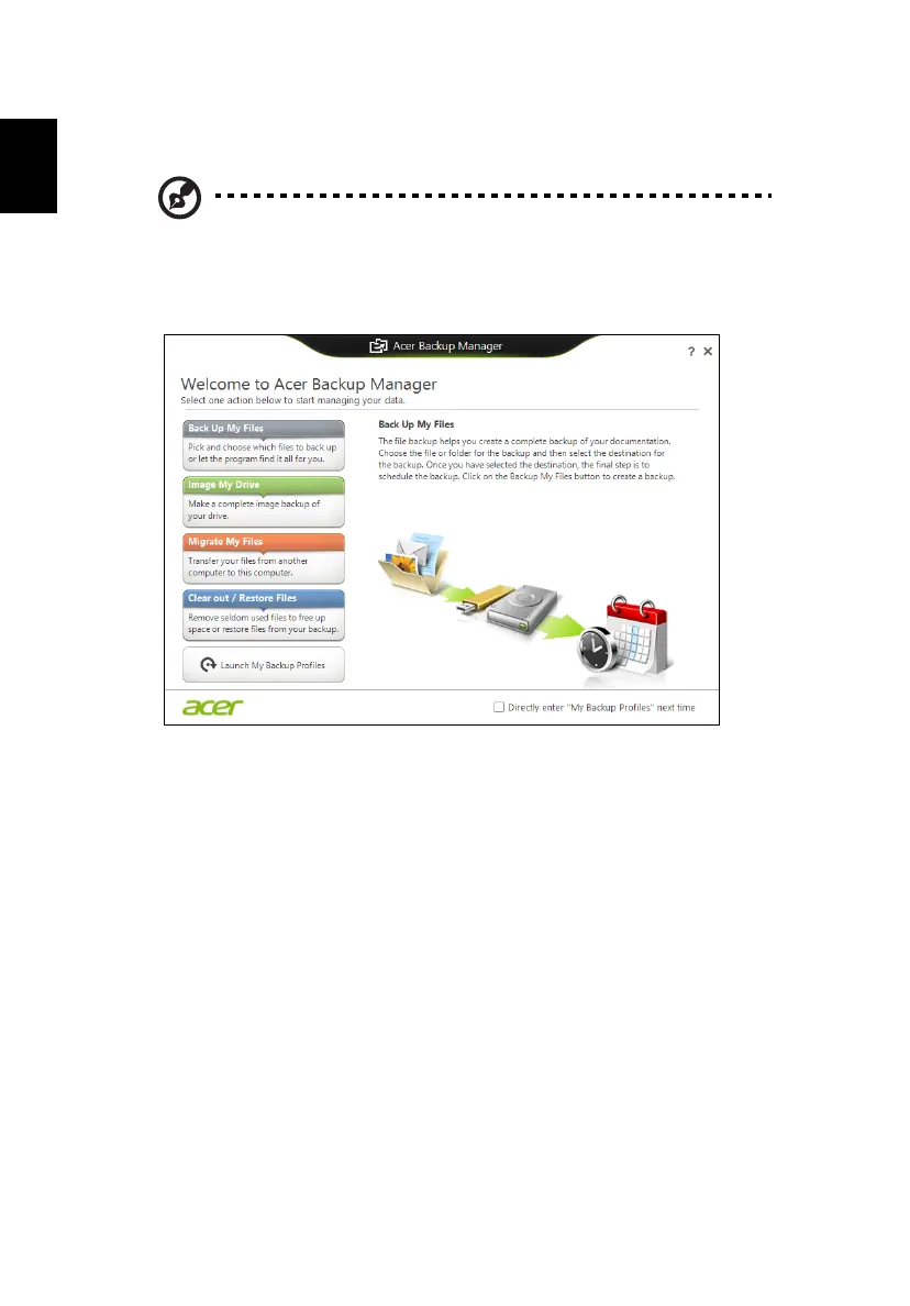 Acer Backup Manager is a utility that enables you to do a variety of backup functions