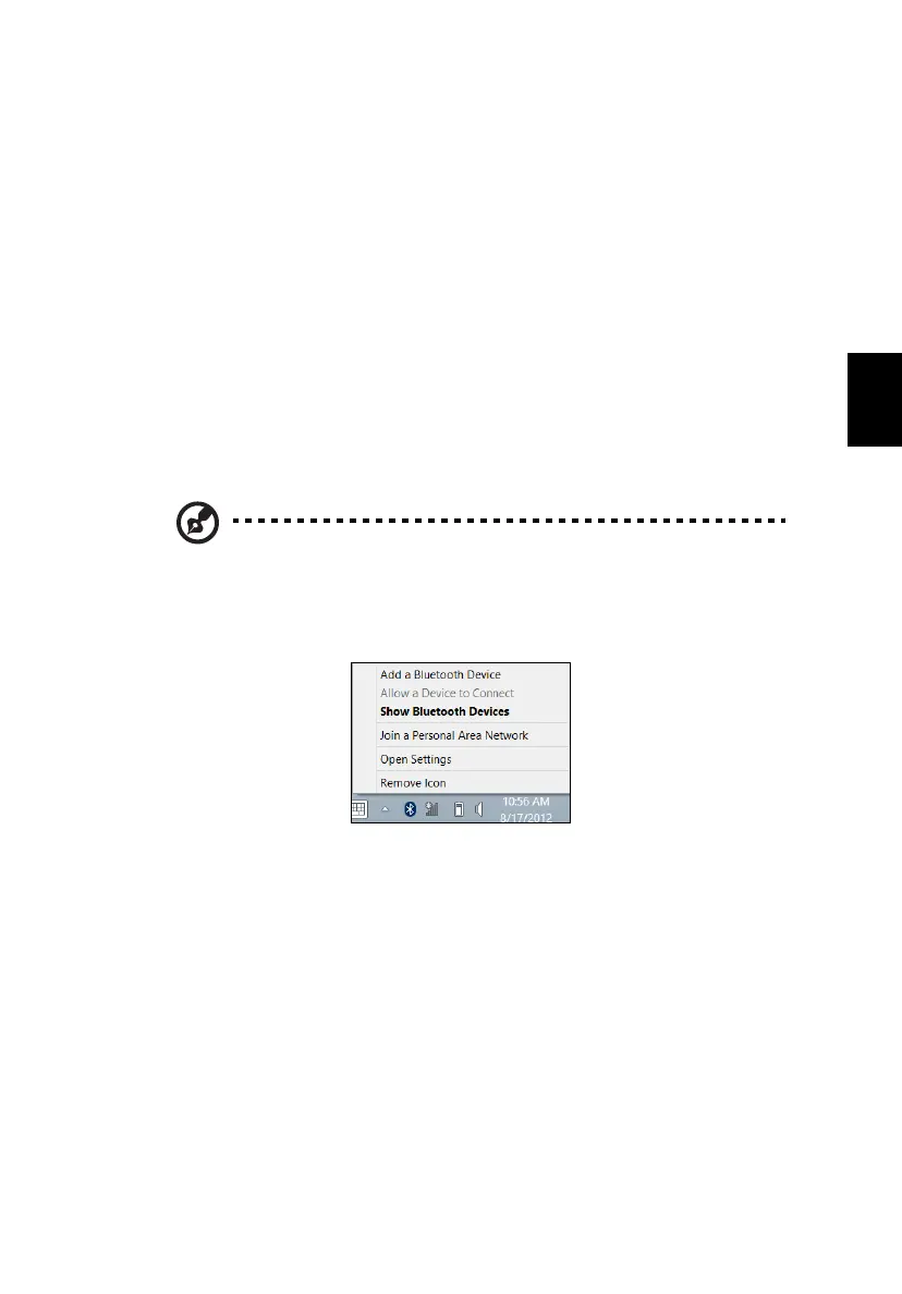 Fra meddelelsesområdet klikker du på Bluetooth-ikonet og vælger Åbn