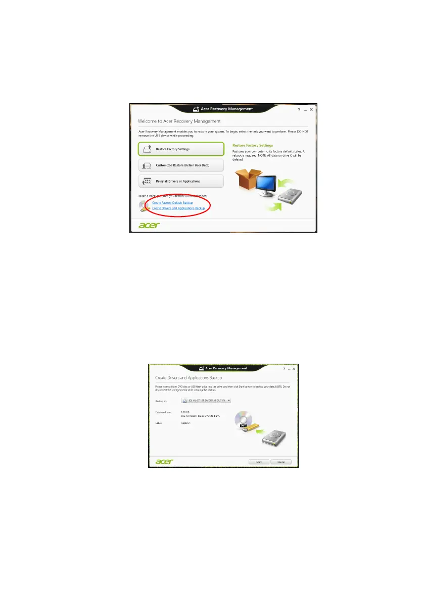 1. From Start, type 'Recovery' and then click Acer Recovery