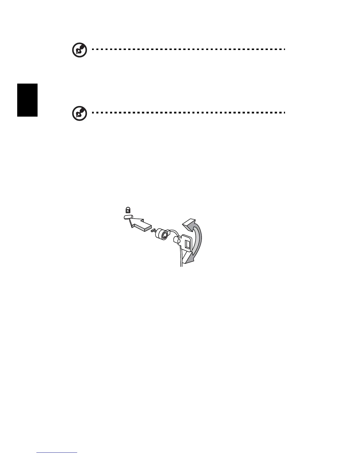 fechada. Introduza o cabo de segurança na ranhura e rode a chave para
