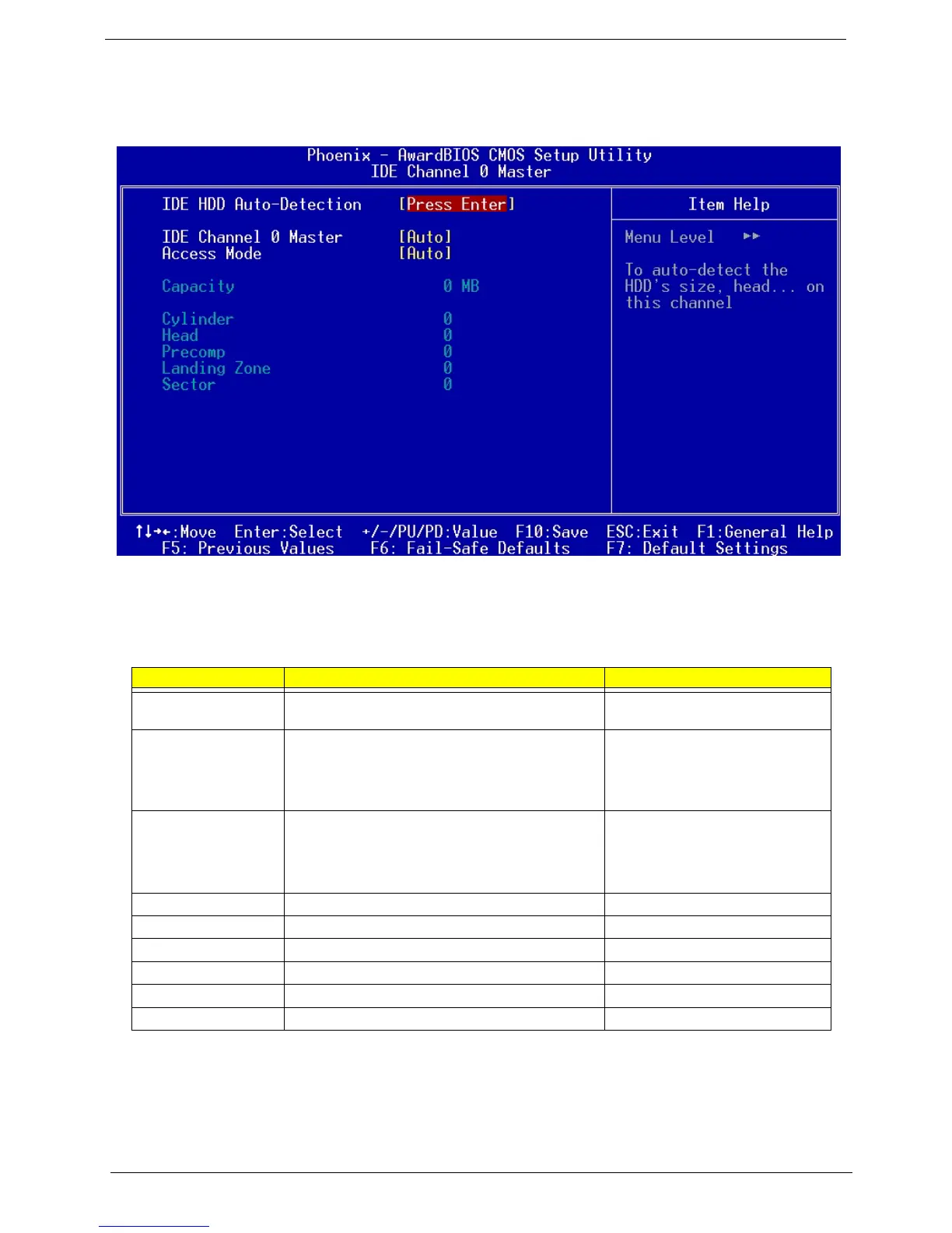 Cylinder Shows your hard disk’s numberof cylinders 0 to 65535