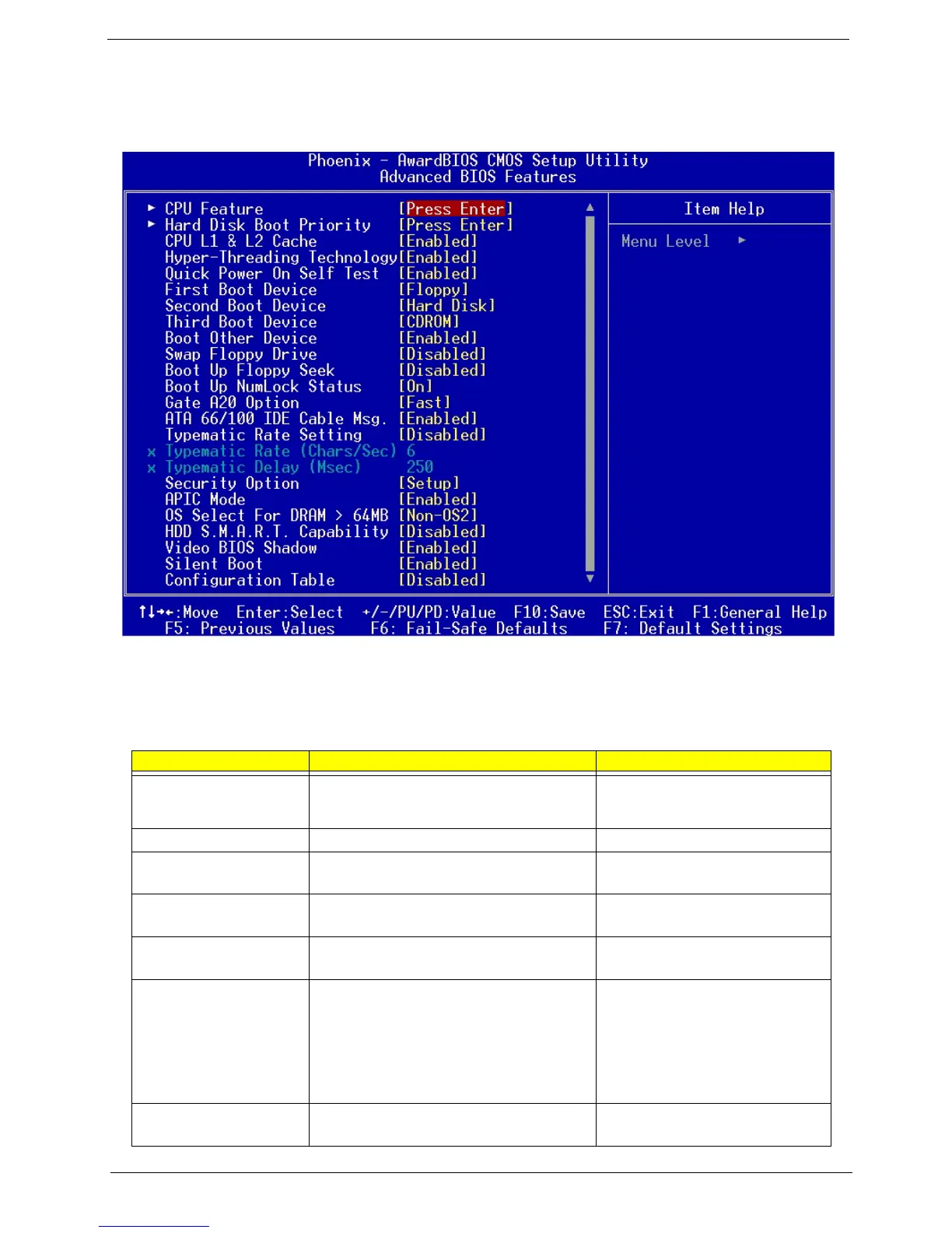 Advanced BIOS Features