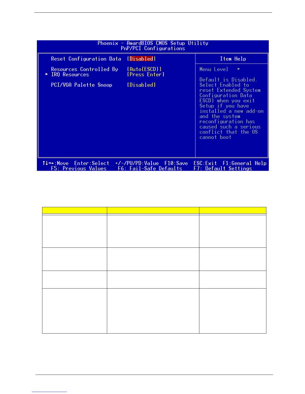Reset Configuration Data Selecting “Enabled” to reset Extended System