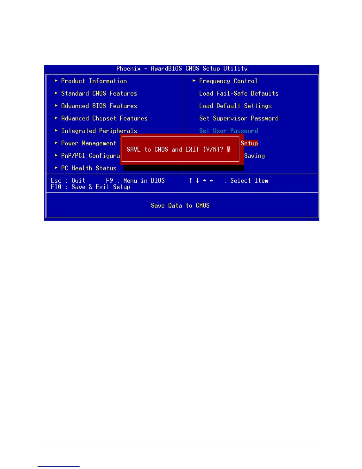 When the Save and Exit dialog box appears, press <Y> to save and exit, or press <N> to return to the main