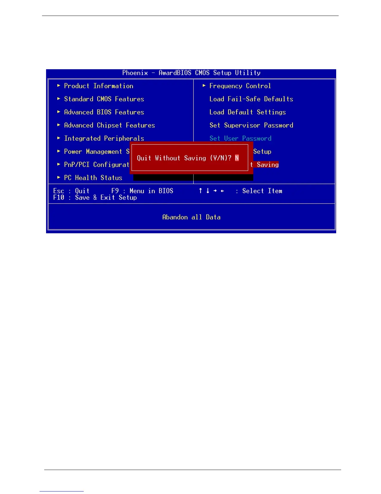 When the Exit Without Saving dialog box appears, press <Y> to discard changes and exit, or press <N> to