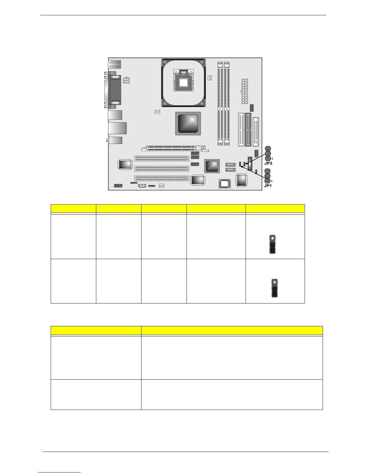 JP1 : Clear CMOS Jumper This jumper is to clear the contents of CMOS memory. You may need