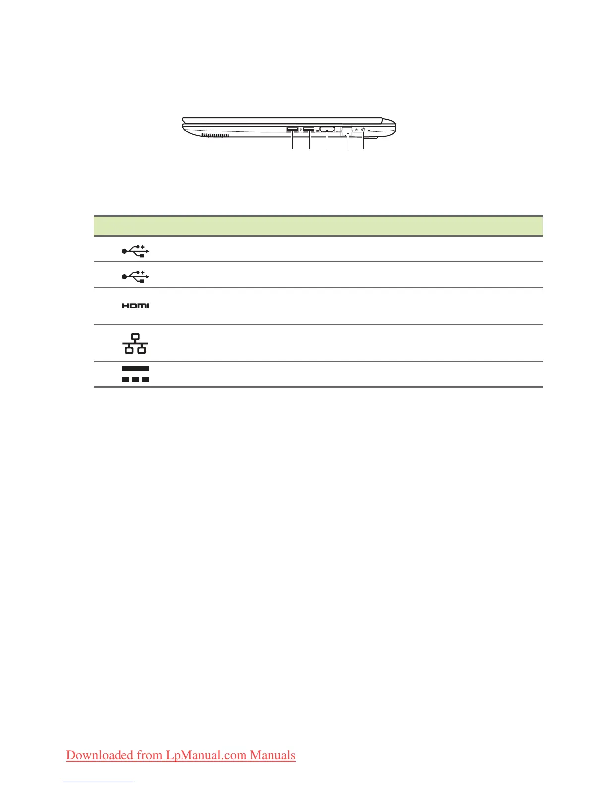 2 USB port Connect to USB devices.
