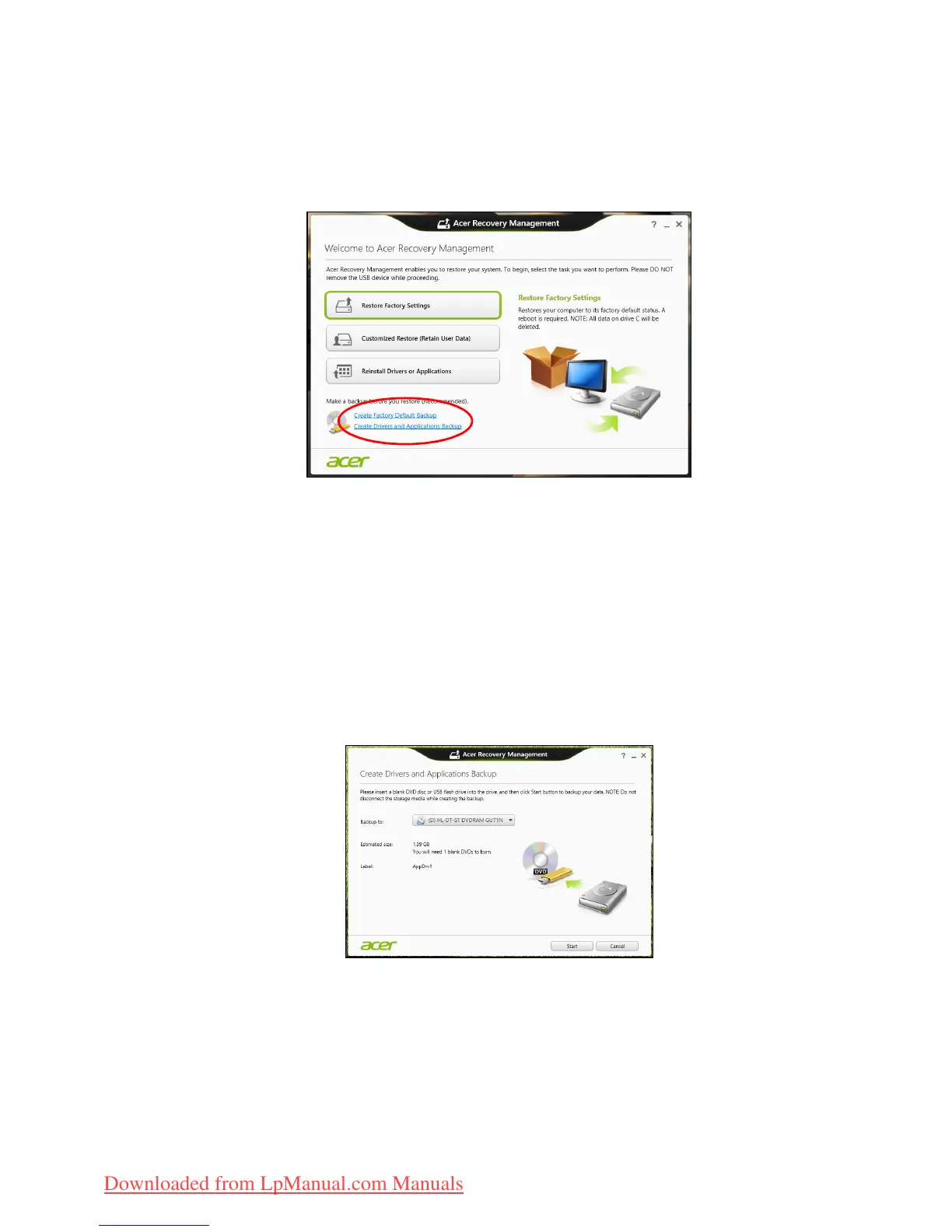 1. From Start, type 'Recovery' and then click Acer Recovery