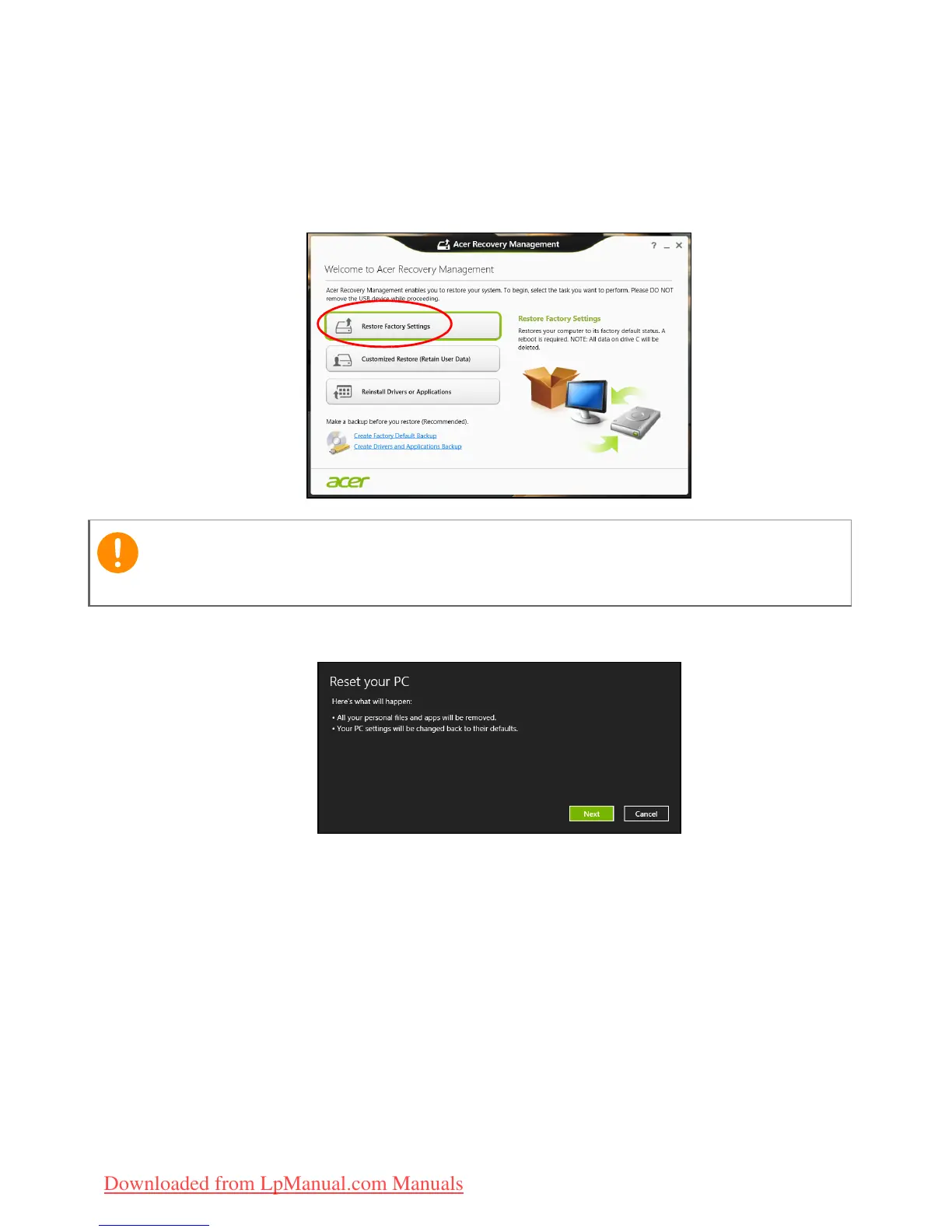 Restore Factory Settings with Acer Recovery Management