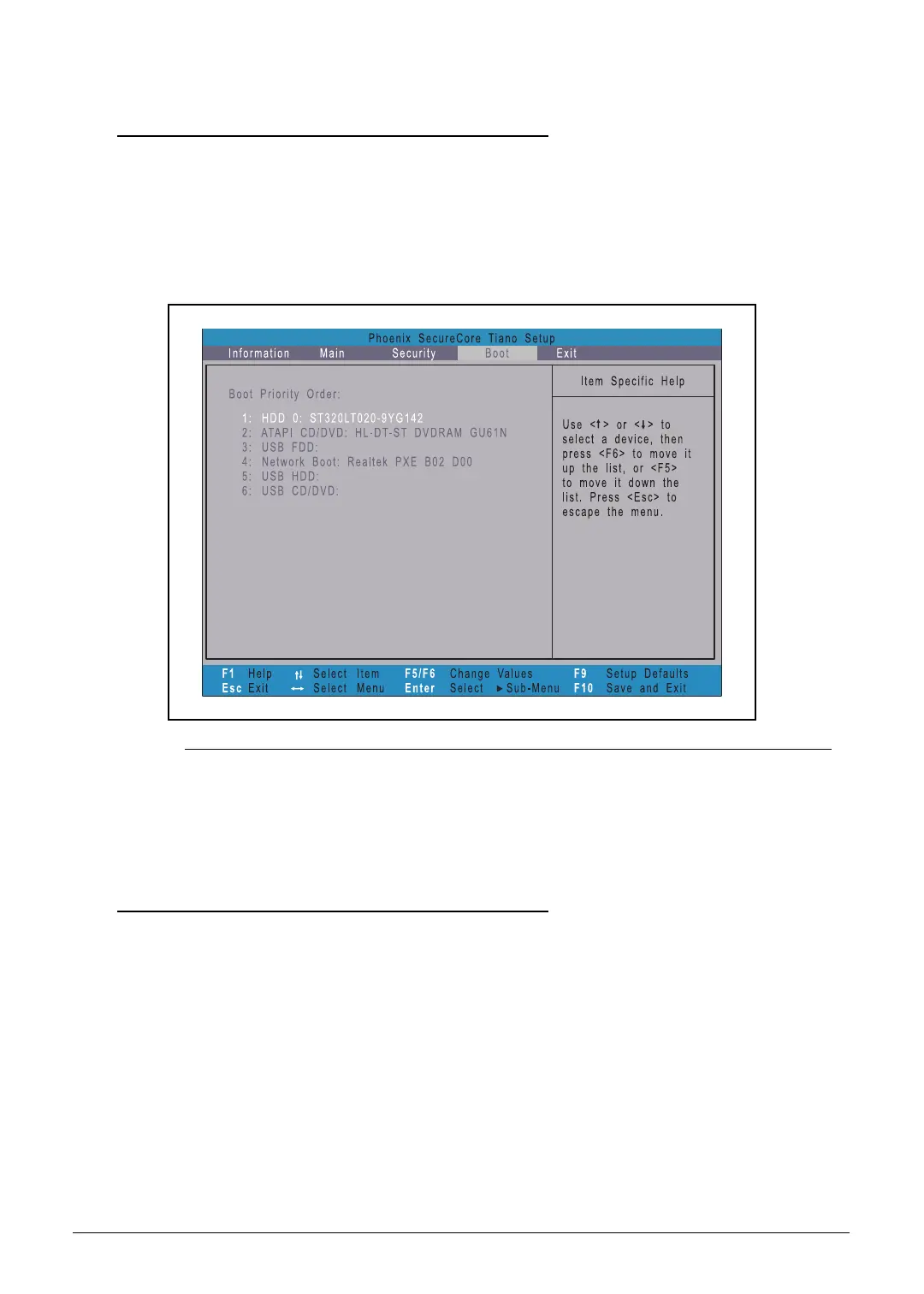 Example: If using USB HDD to Update BIOS, move USB HDD to position 1.