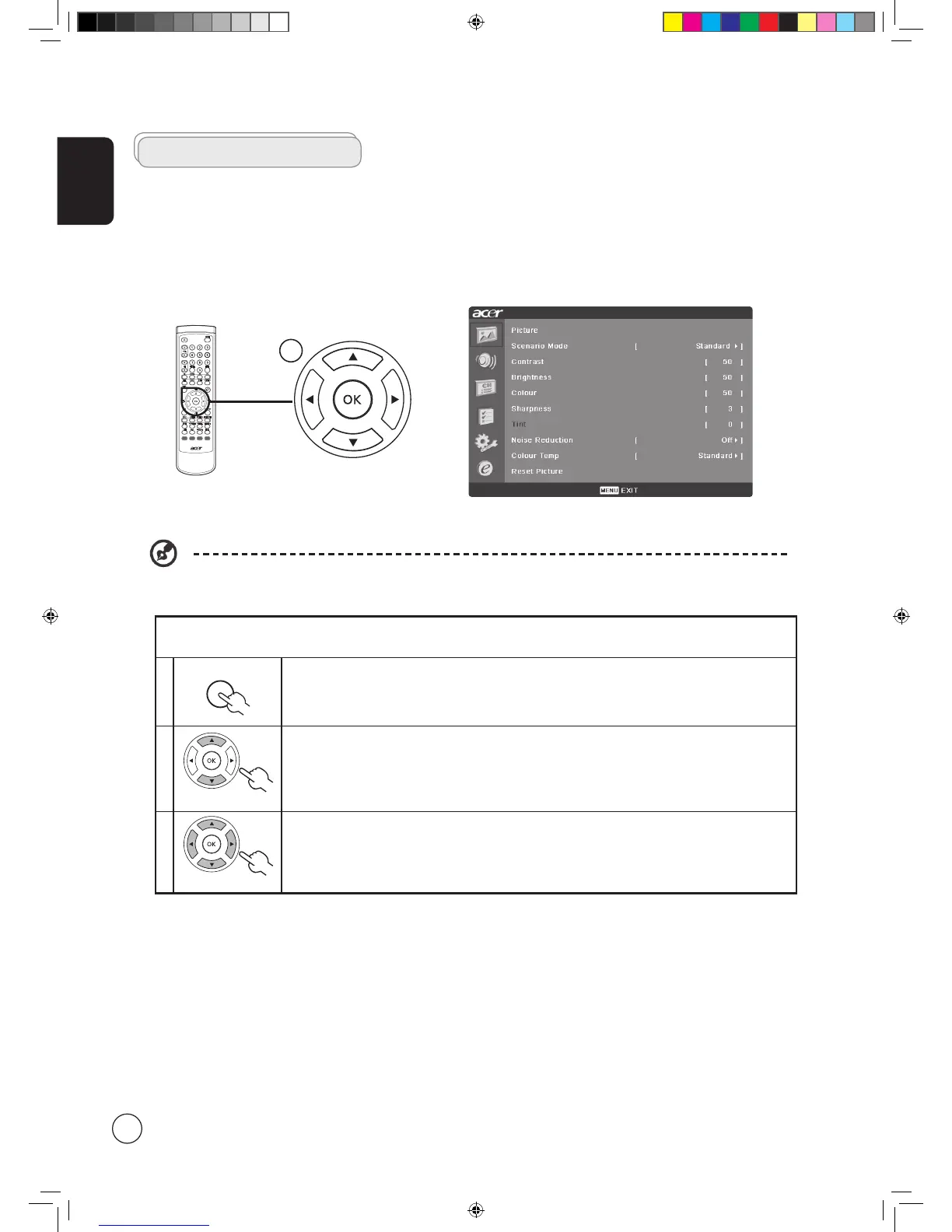 menu options, while left/right will adjust the different settings (for example, in the Picture menu,