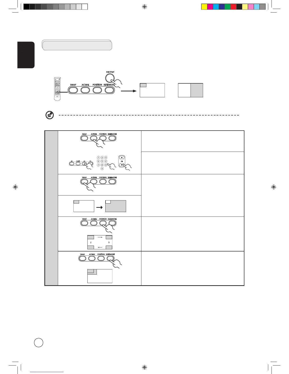 4. Press the SIZE/MODE key to select the size of the subscreen,