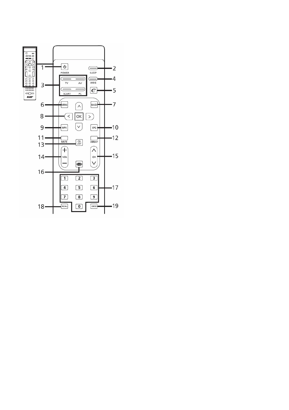 3 Input buttons (TV/AV/SCART/PC)
