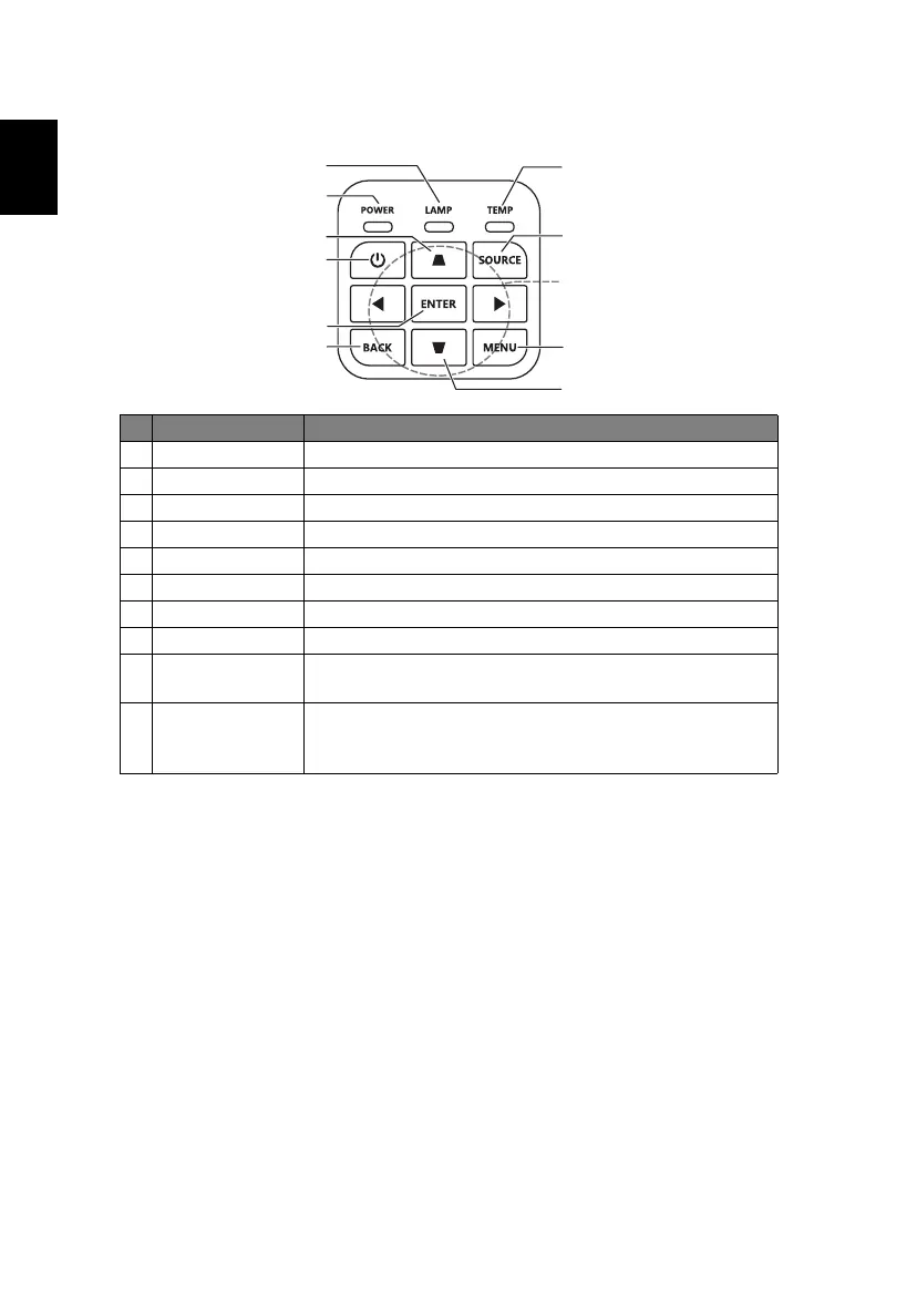 4 Power key Refer to the "Turning the Projector On/Off" section.