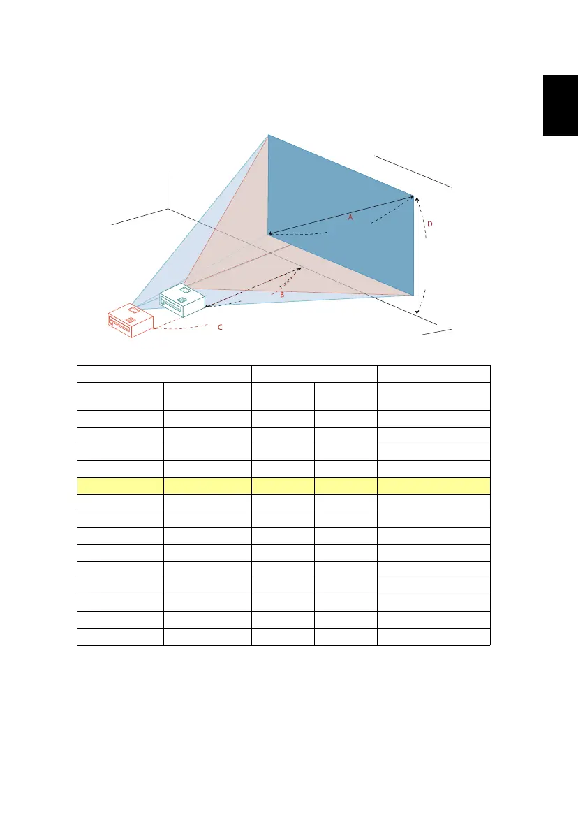 To obtain an image size of 70" set the projector at a distance between 1.8 m