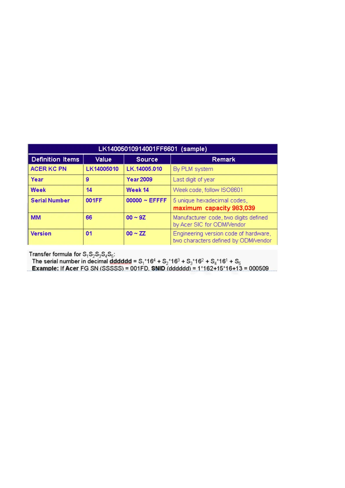 Note 6.0.3: Acer KC PN is more important than Acer KC SN for repair centers.