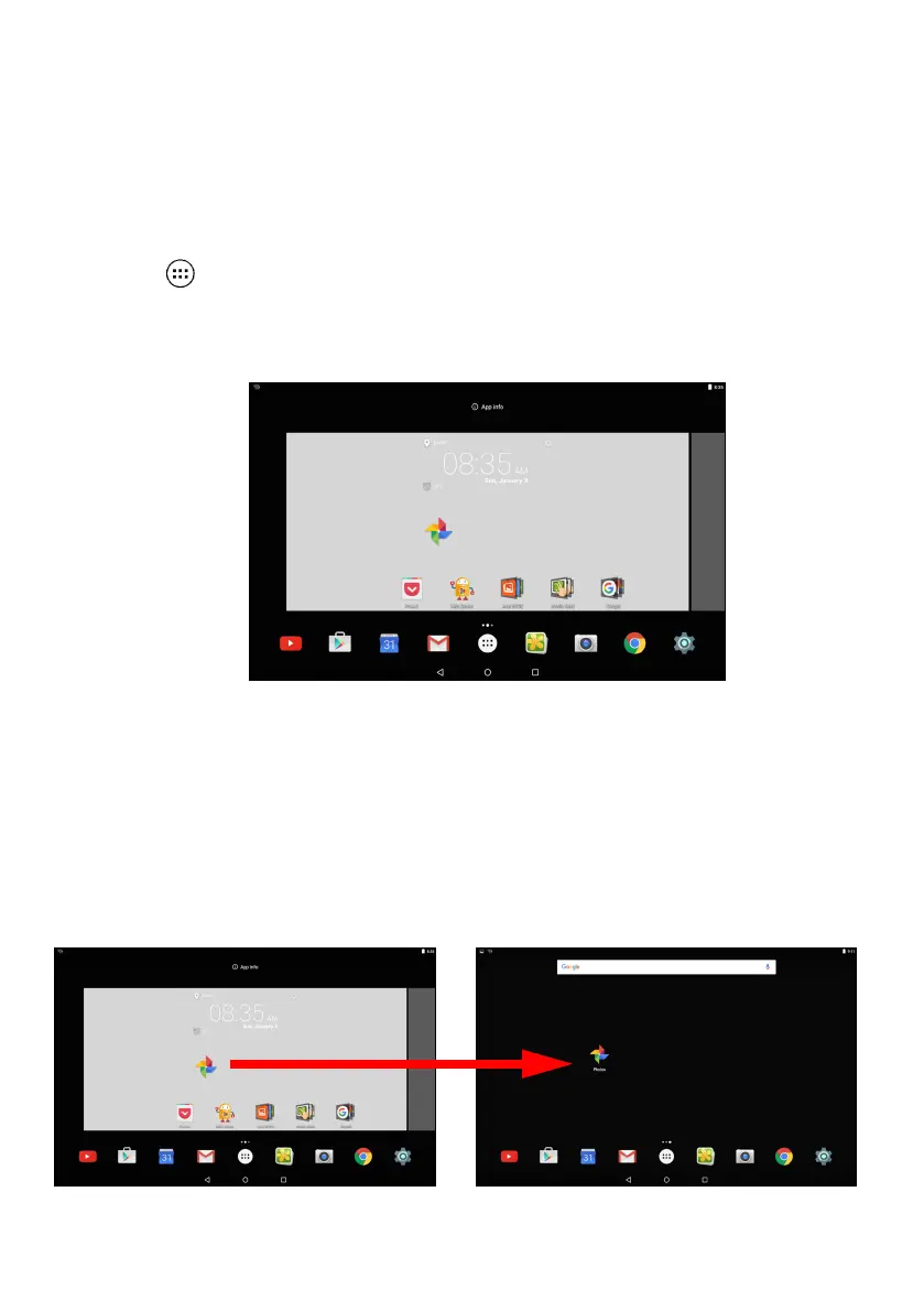 2. Release your finger to place the app.