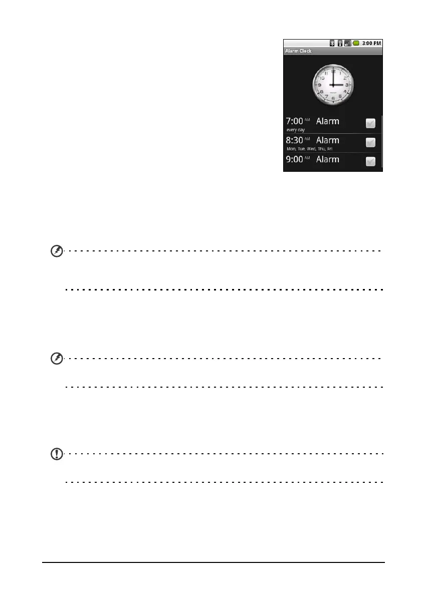 default. To edit alarm settings, tap Alarm Cloc