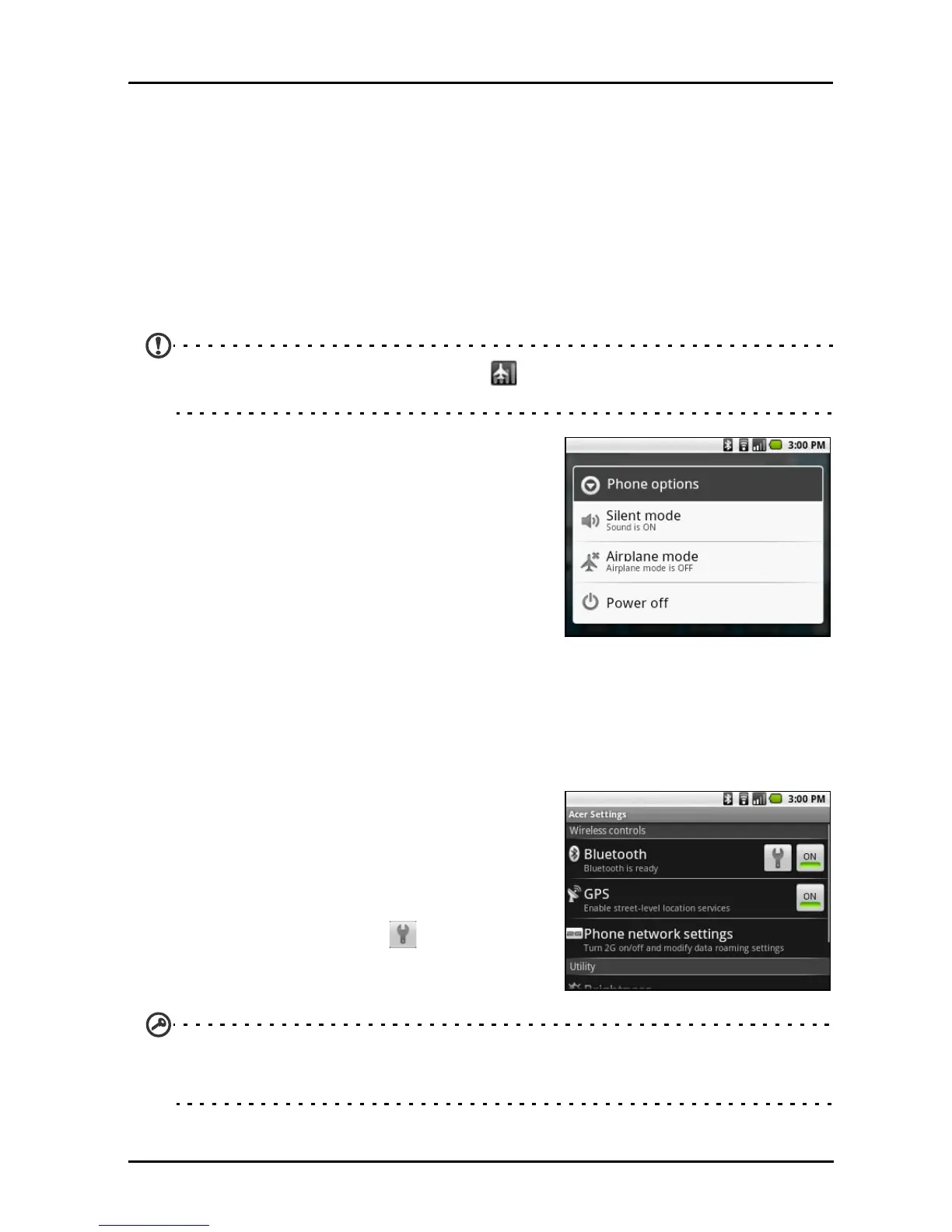 disabled. Please refer to “Putting your smartphone in Airplane mode“ on page 29 for