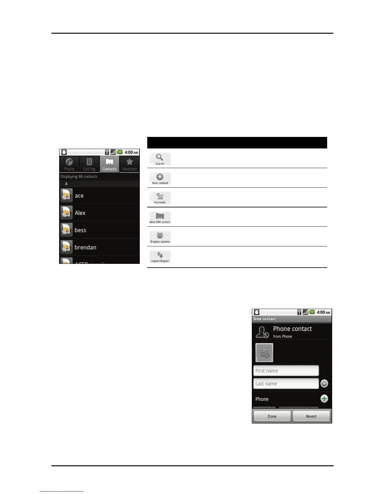 tacts from the Home screen or the Contacts tab from the Dialer to view
