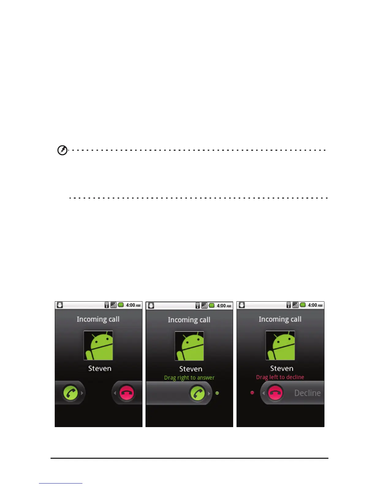 accept or decline the call, drag the appropriate button across the screen.
