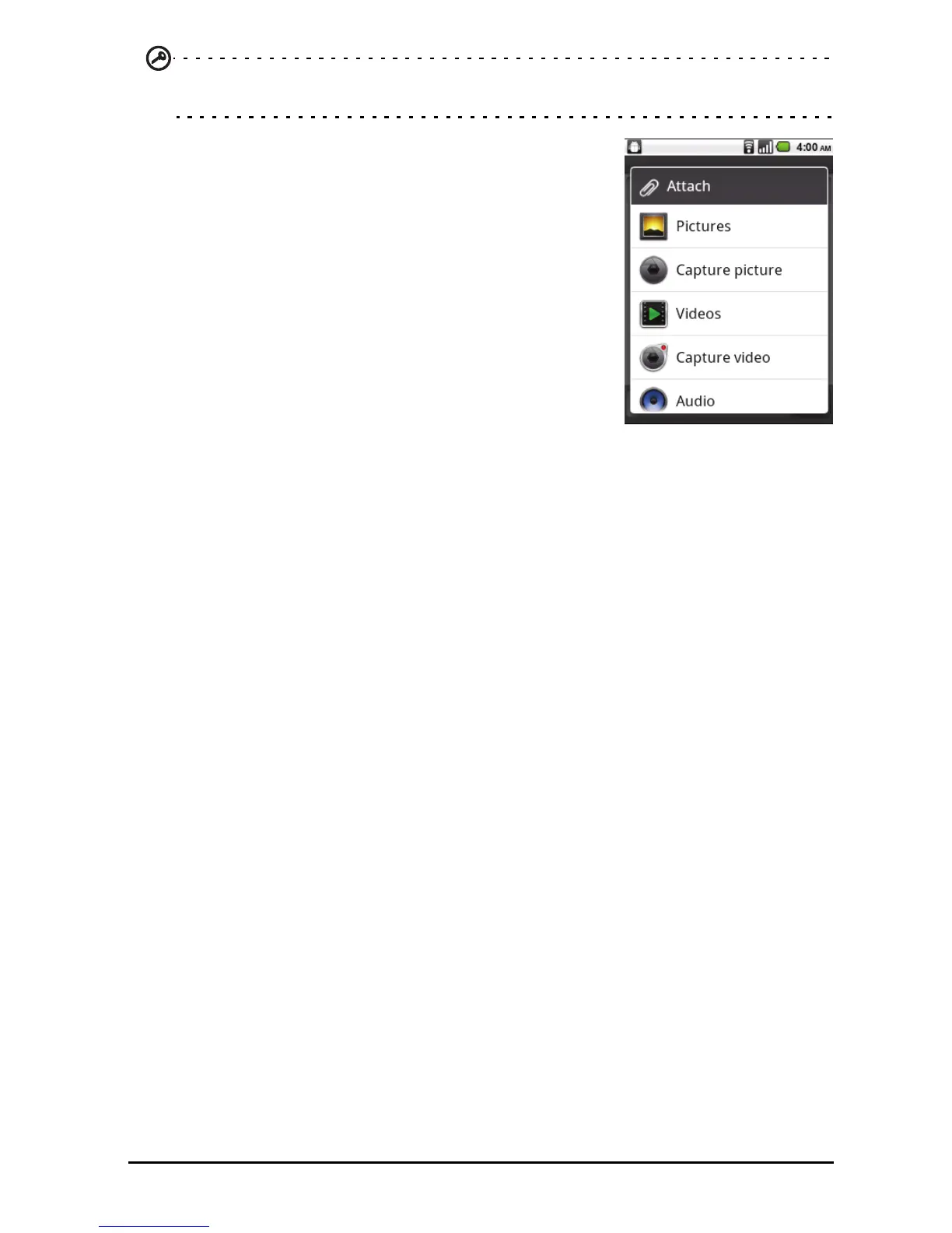and tap Attach. You will be presented with a menu
