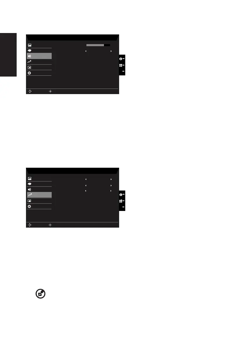 2. Toggle the joystick to the up or down to select Audio from the OSD.Then toggle to the