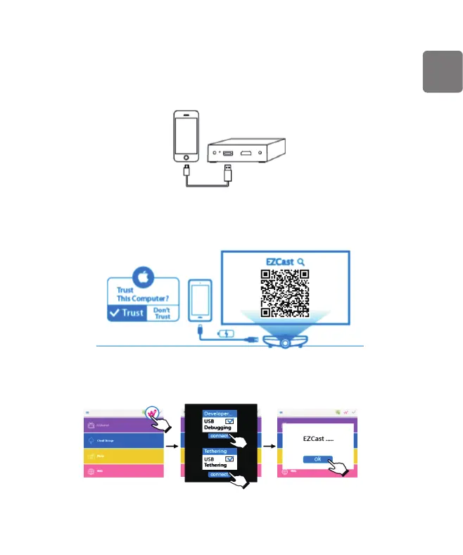 Step 2: Use smart phone cable to connect phone to the projector’s USB port. (Android phones