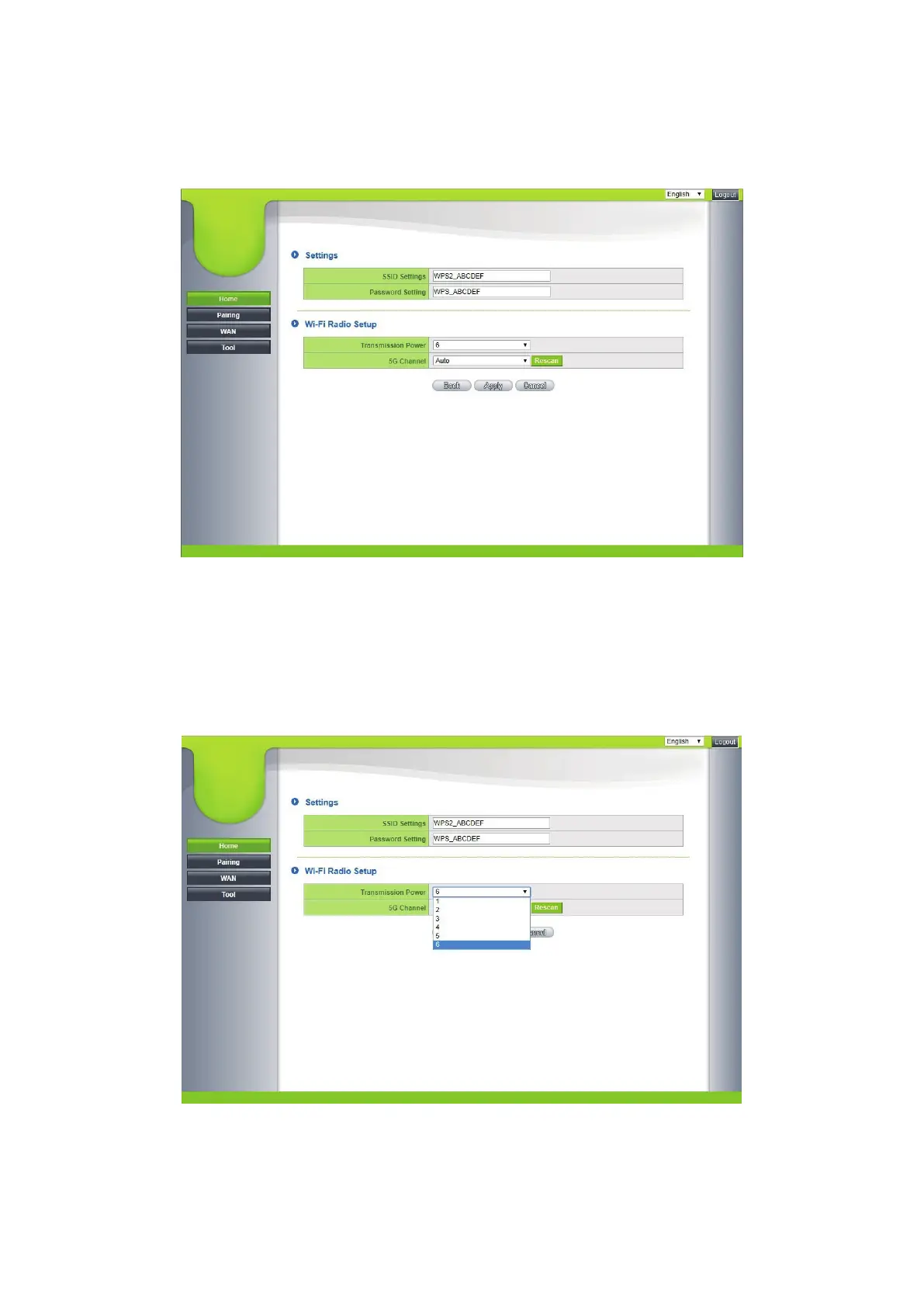 2.2.1 In the RF setting, the transmission power can be changed between