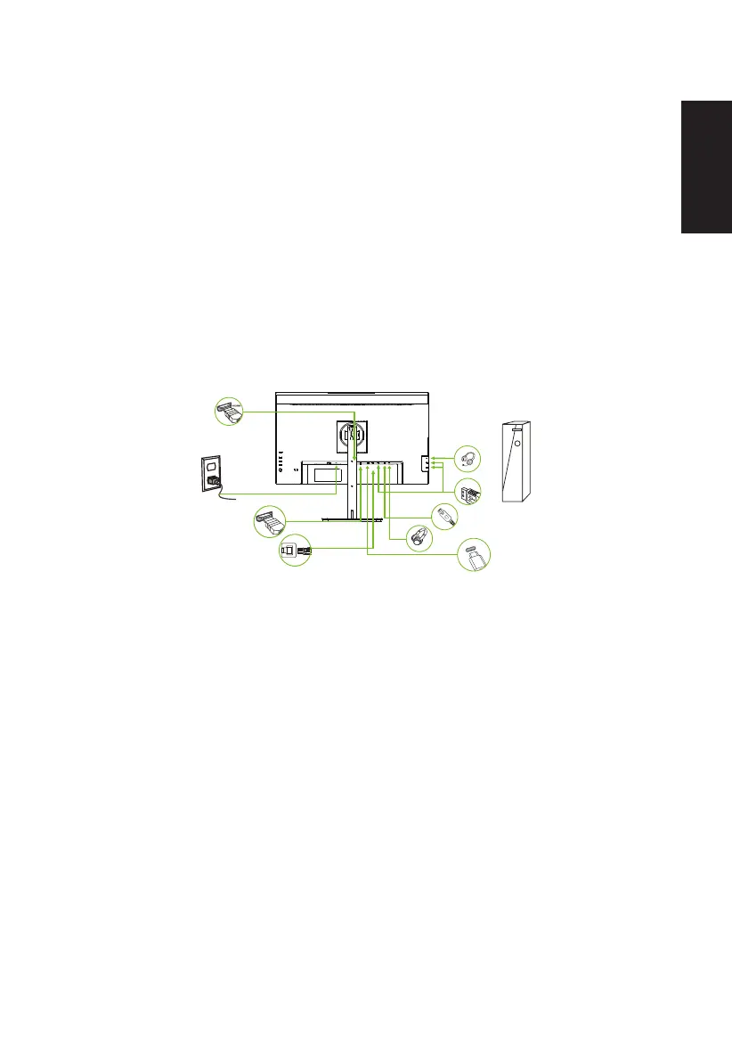 2. Connect the signal cable to the HDMI (optional) and /or DP (optional) input socket of the monitor, and the HDMI
