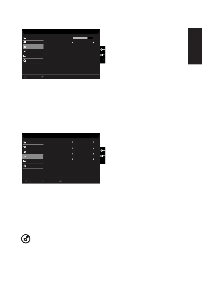 2. Toggle the joystick to the up or down to select Audio from the OSD.Then toggle to the