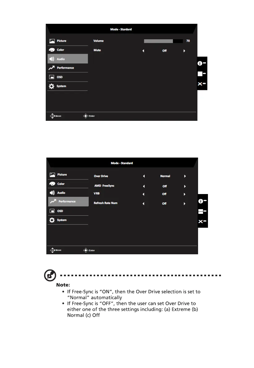 Note: If FreeSync set "On" you can see the V Frequency to changes in the OSD.