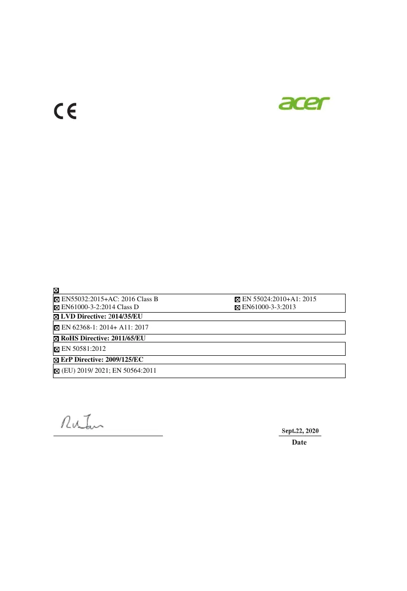 We, Acer Incorporated, hereby declare under our sole responsibility that the product described above is in