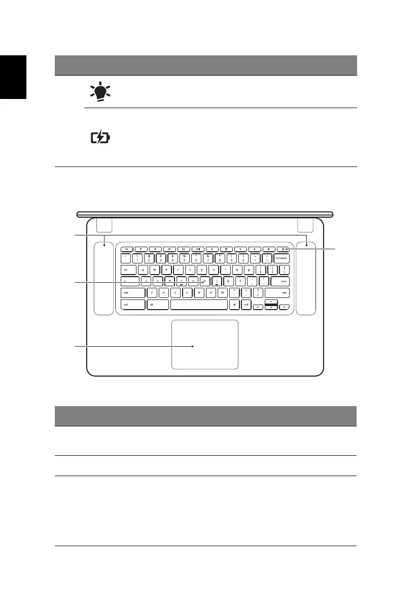 Power indicator Indicates the computer's power status.