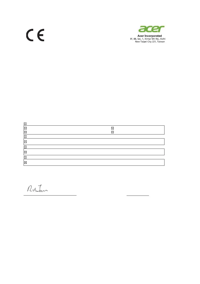 We, Acer Incorporated, hereby declare under our sole responsibility that the product described above is in